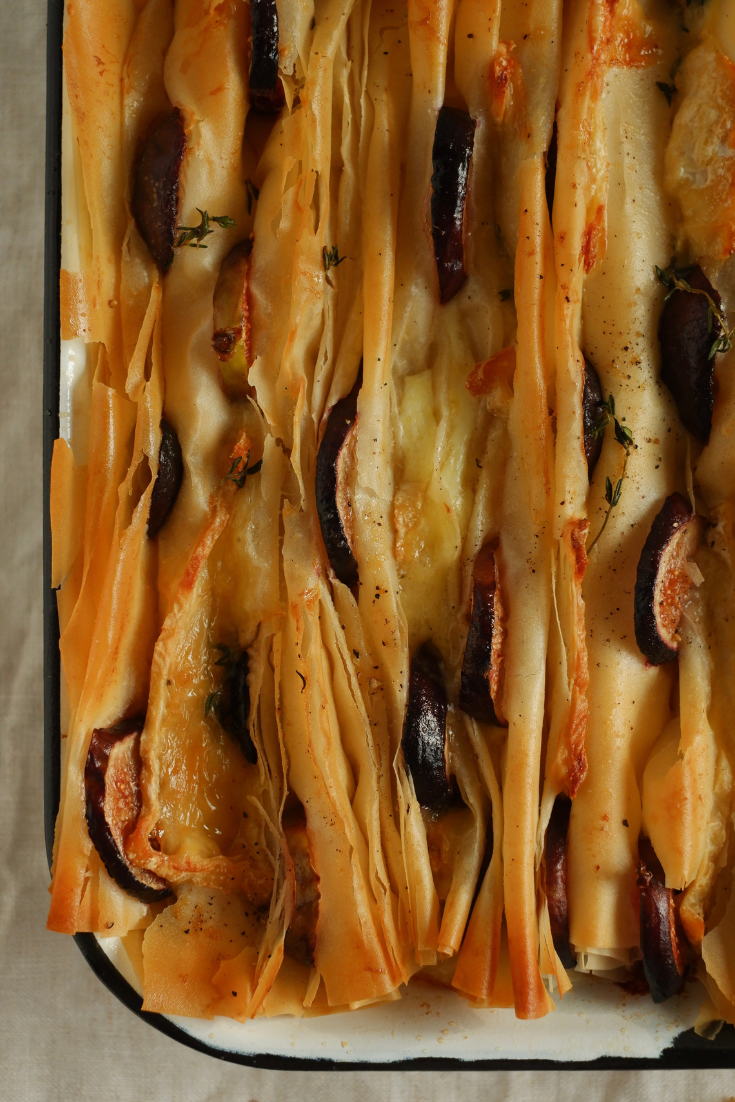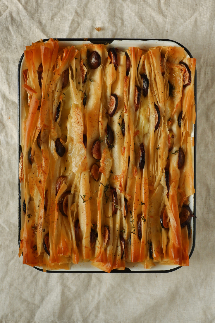 I find myself turning on the oven, opening the fridge and trying not to think too much. A pastry of free folds. With crackling filo pastry, caramelized figs, melted brie cheese and touches of honey and thyme. This is my answer to winter. A warm oven in front of a frozen city.
